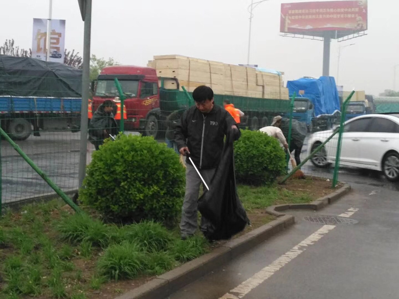 4月21日清晨,22名党员干部立即启动降雨天气保洁清扫工作预案,提前上岗,冒雨对国展周边道路上的积水、垃圾进行清理。为确保排水设施畅通,保洁公司安排防汛人员对重要路段进行全时段值守,重点清理雨水箅子上的杂物。与此同时,党员们采取分组推水的工作模式,将低洼路段的积水推入收水口,针对无积水路段散落的枯枝树叶杂物等,党员们加大清扫保洁频次及垃圾收集次数,确保了降雨天气期间道路清扫保洁突击任务,全力保障了国展周边环境整洁有序。
